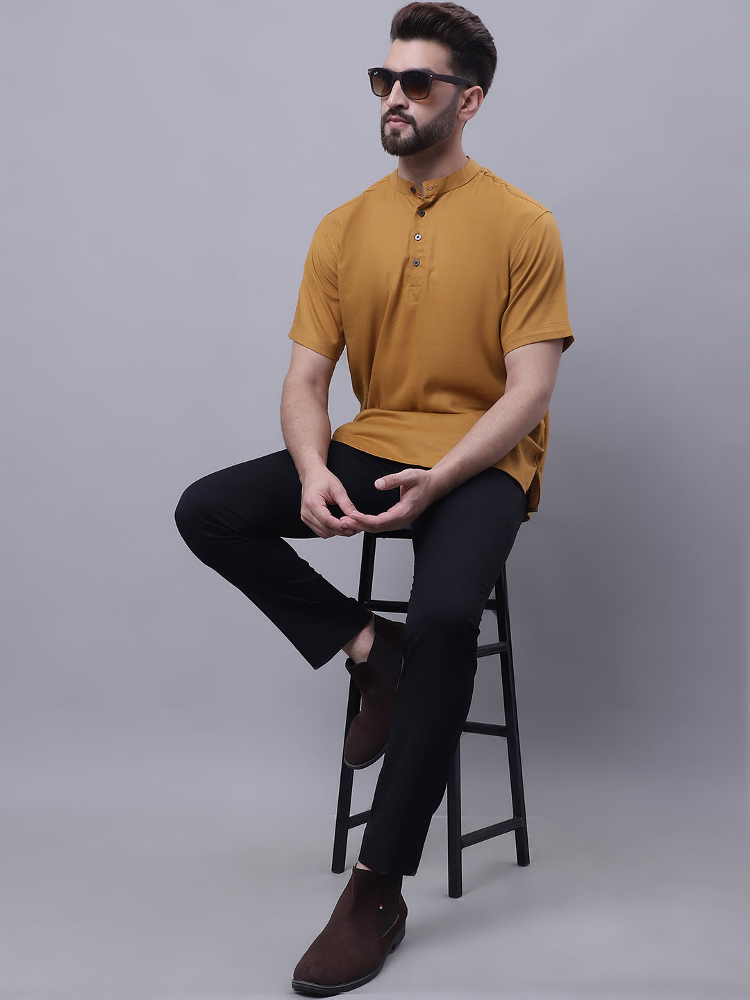 Pure cotton short kurta with band collar.
