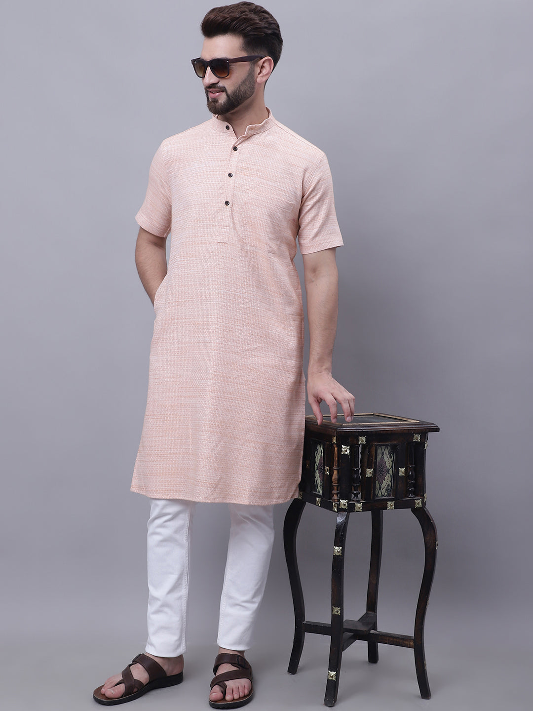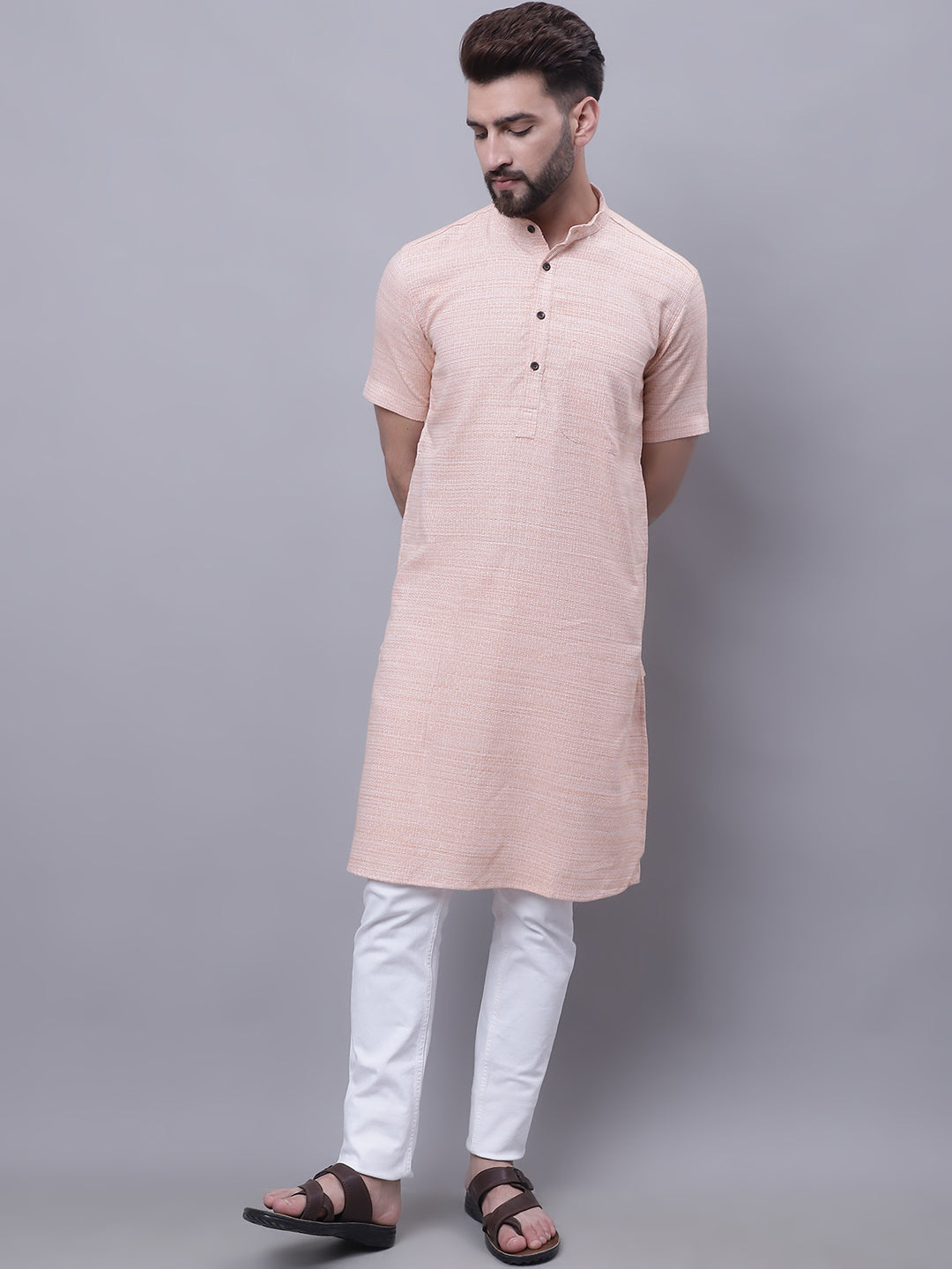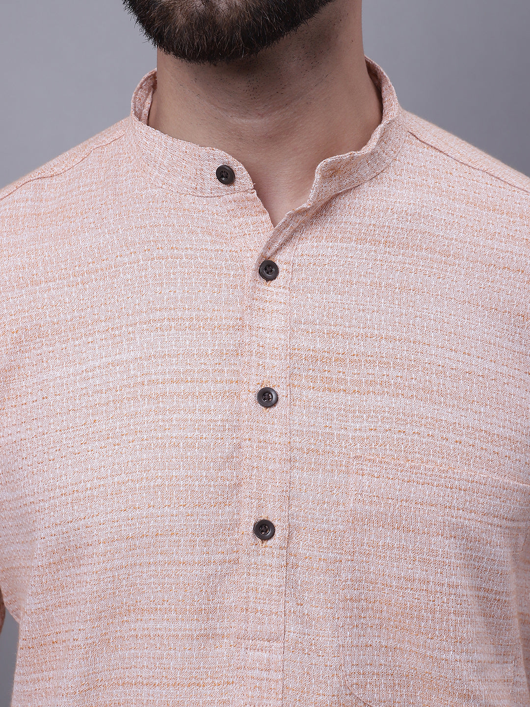 Even Apparels Peach Pure Cotton Short Sleeves Kurta With Band Collar