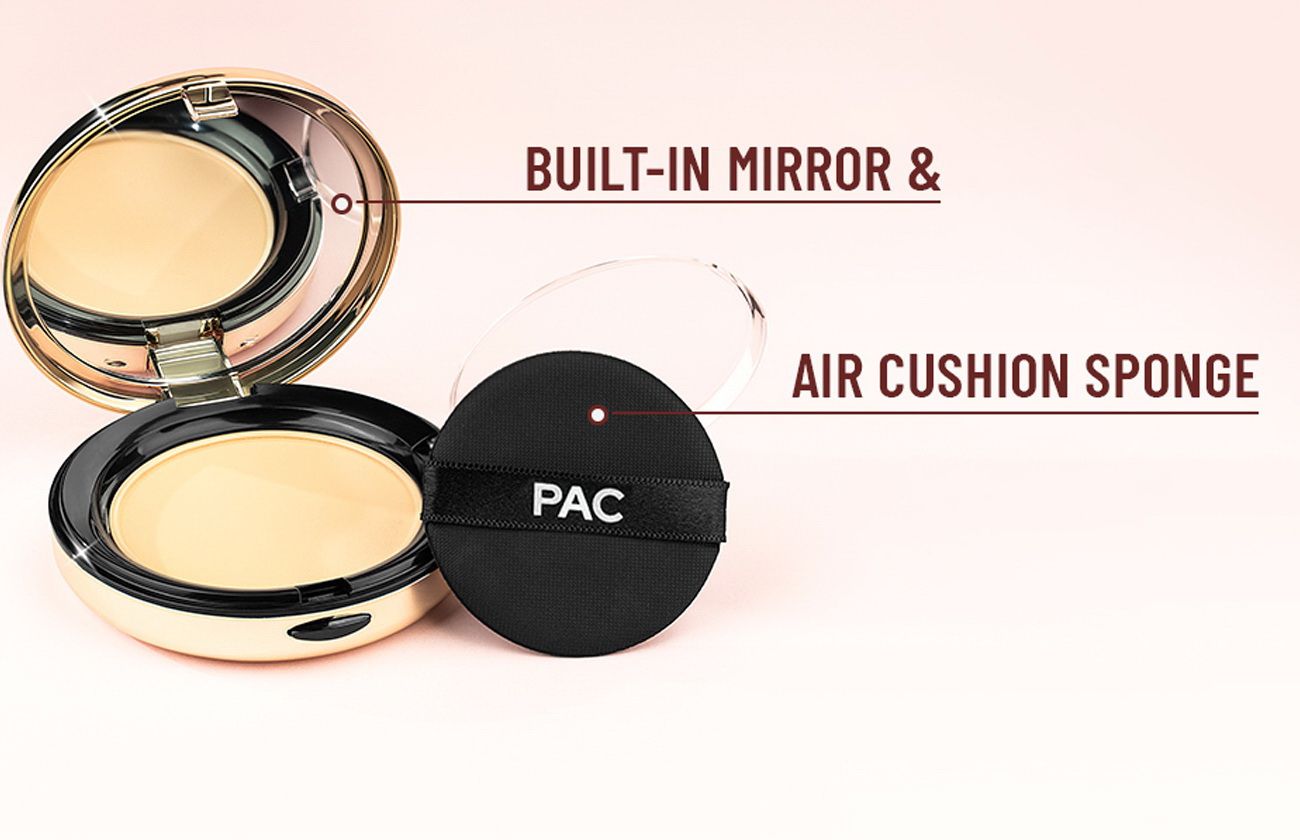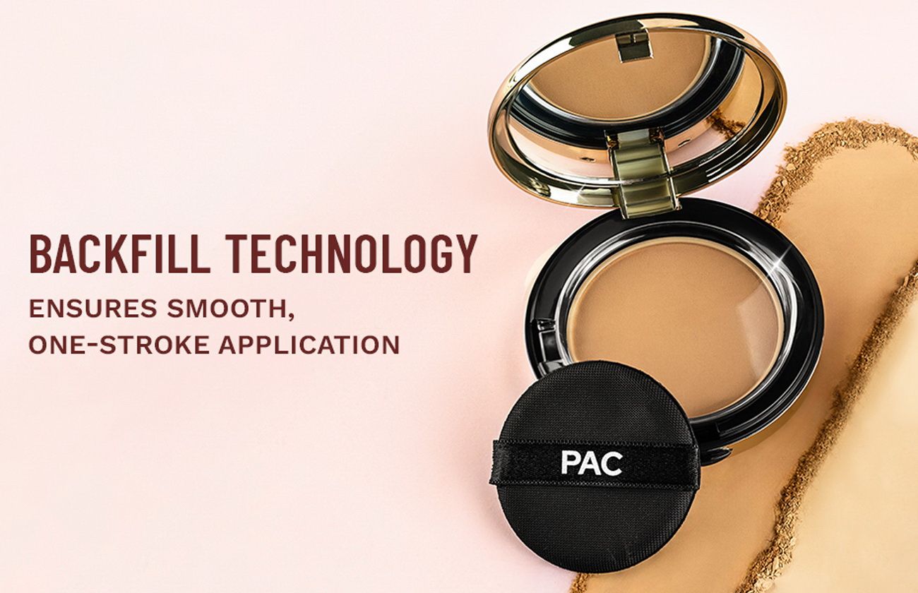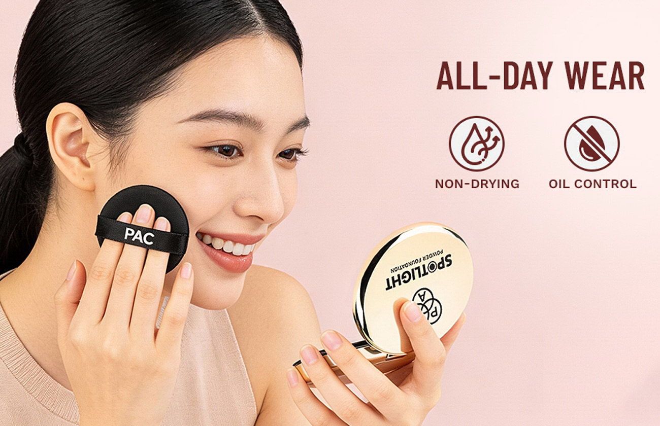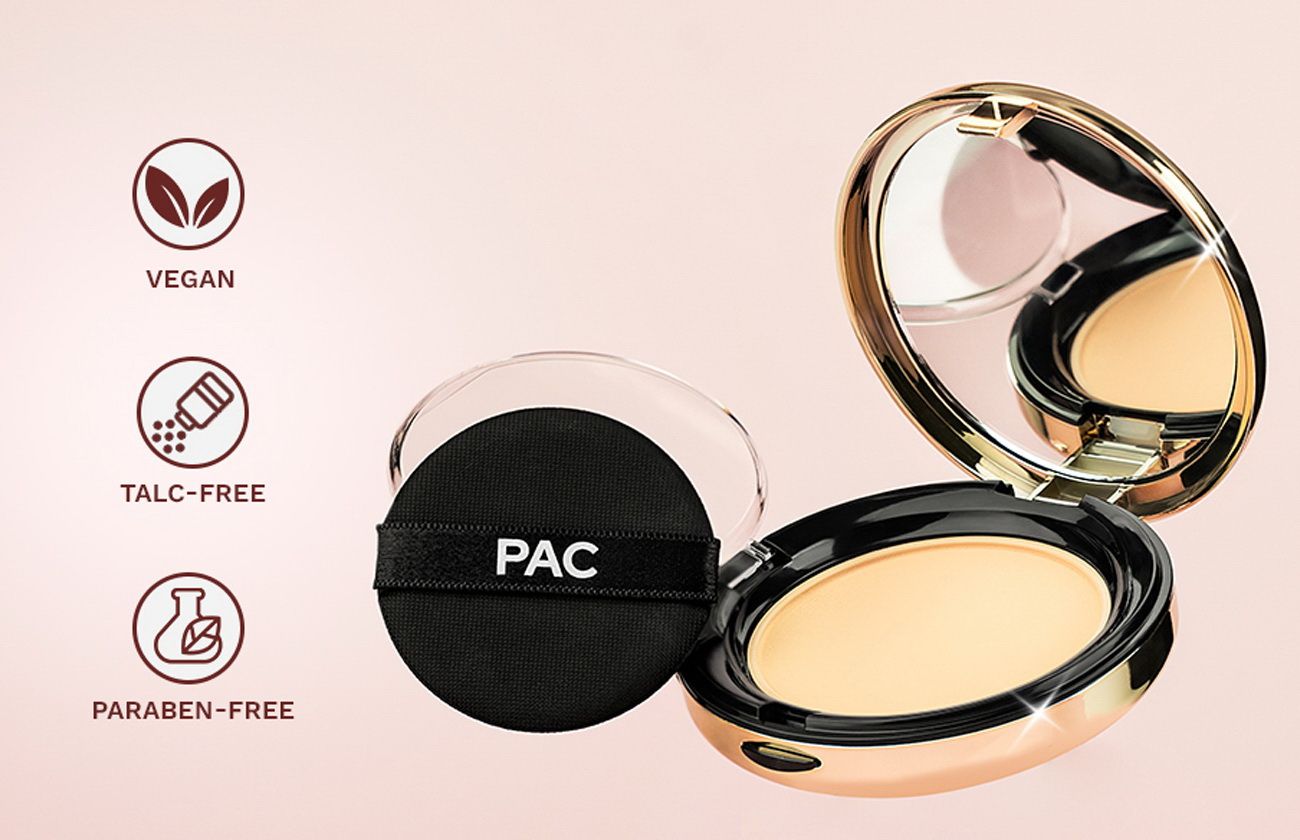 Apply the PAC Spotlight Powder Foundation with the provided powder puff in a dabbing motion to pack the product onto the skin for a smooth and even finish.
