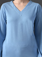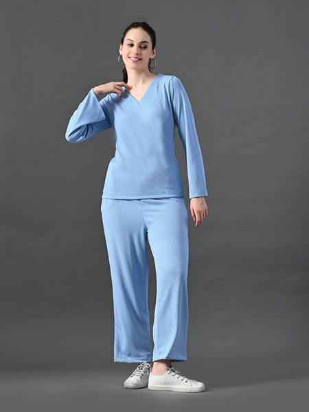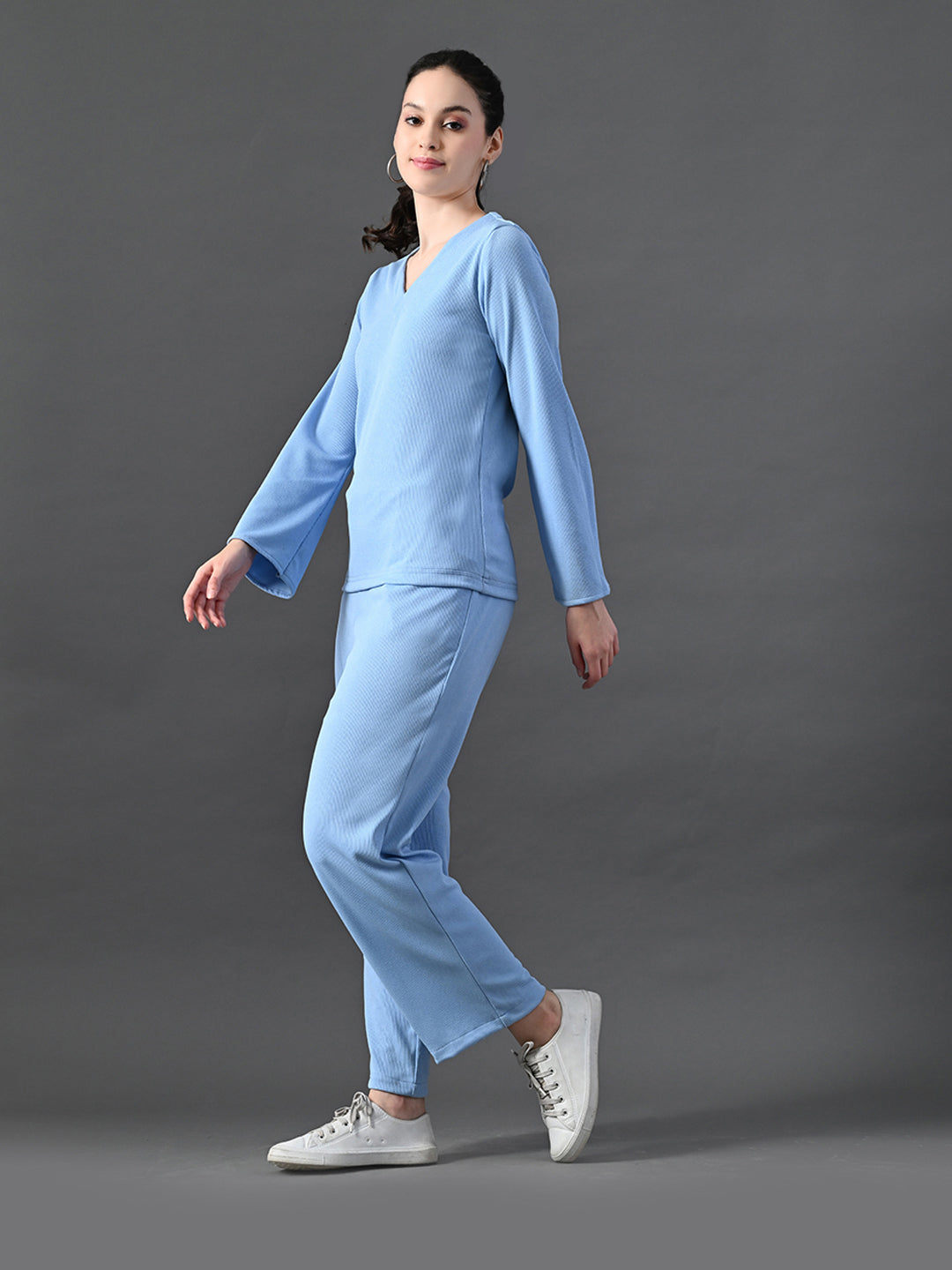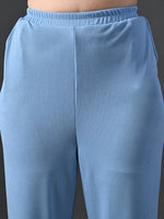Myshka Women's Blue Ribbed Cord Set Pack Contains: 1 Top & 1 Trouser Top Length of Kurta: 25 Top Shape: Relaxed Top Fabric: Polyester Top...