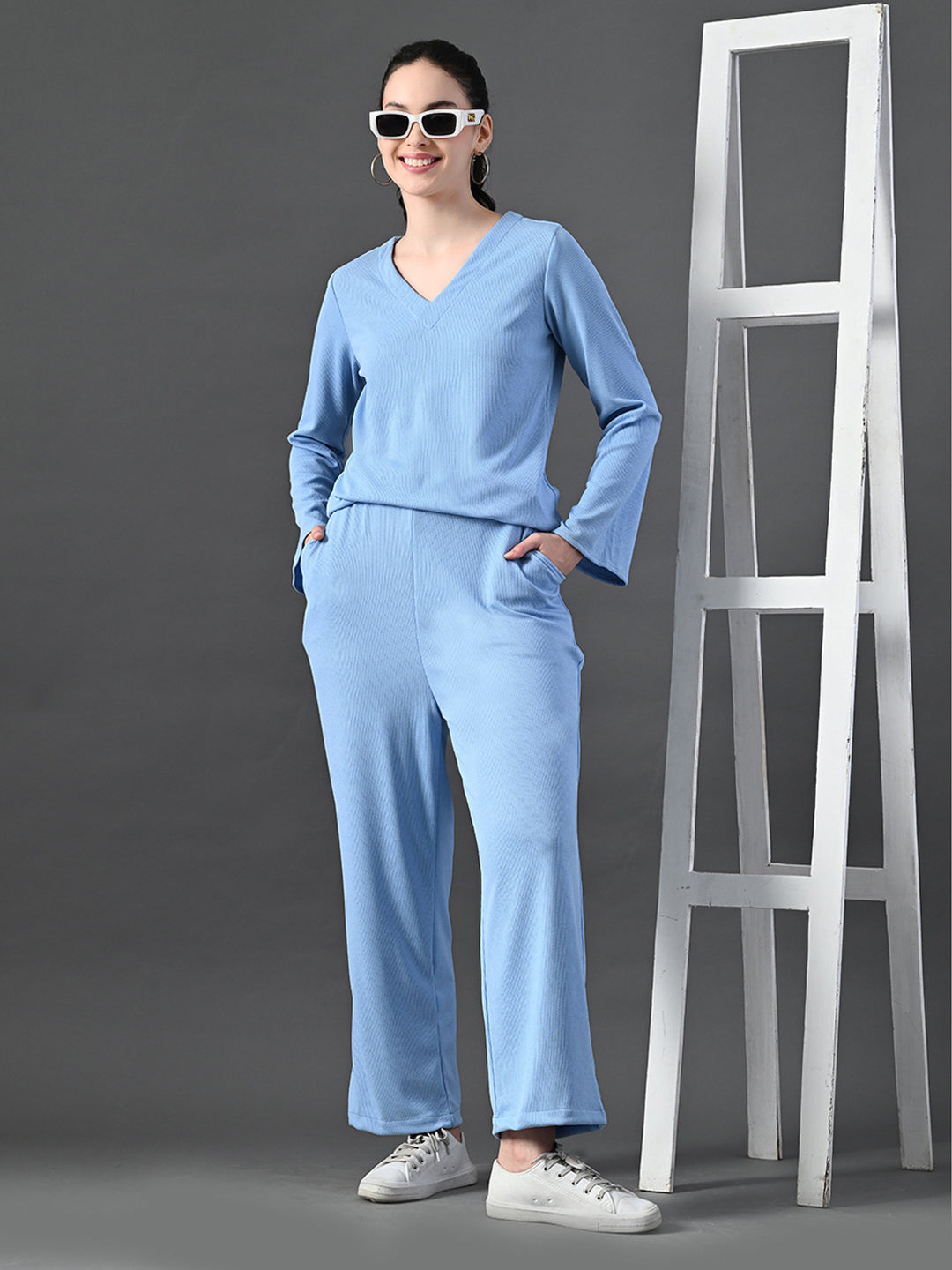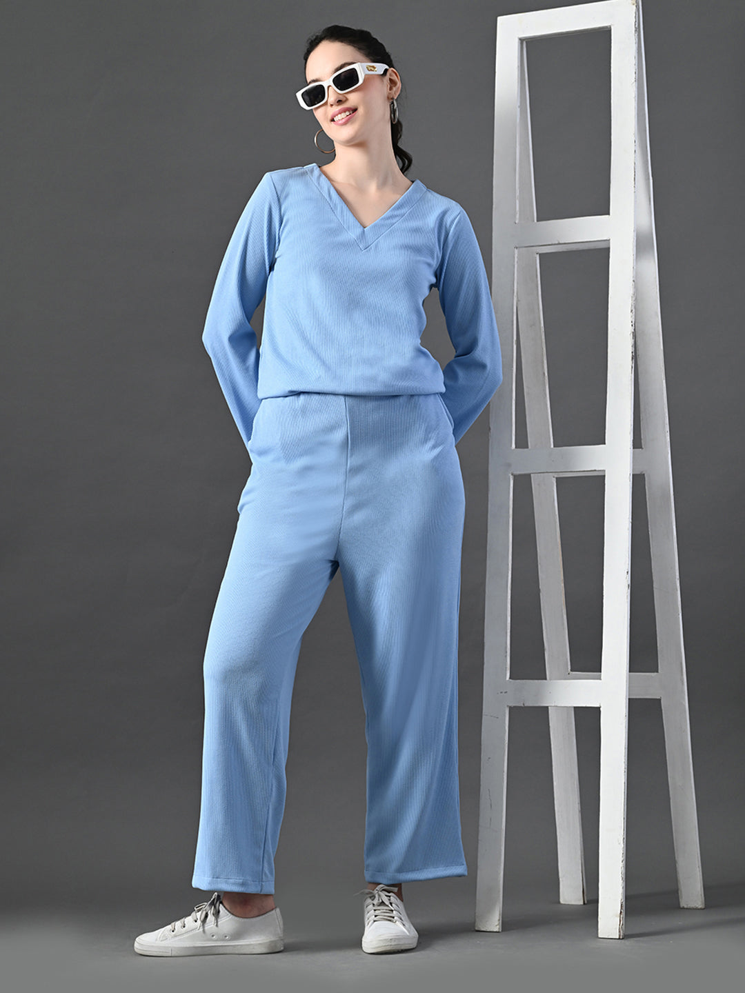 Myshka Women's Blue Ribbed Cord Set - Distacart