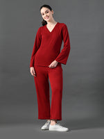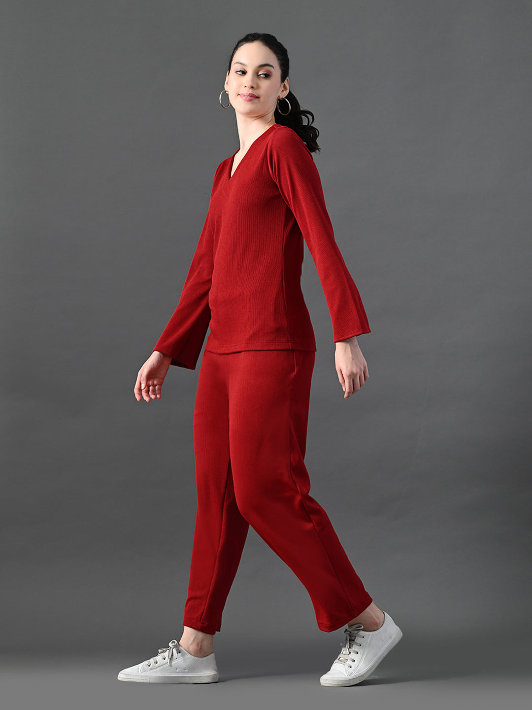 Myshka Women's Red Ribbed Cord Set - Distacart
