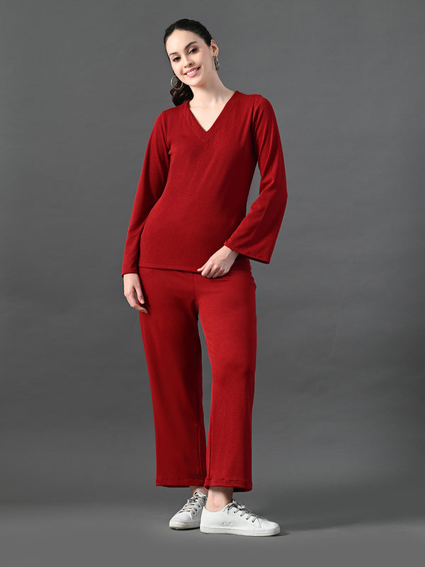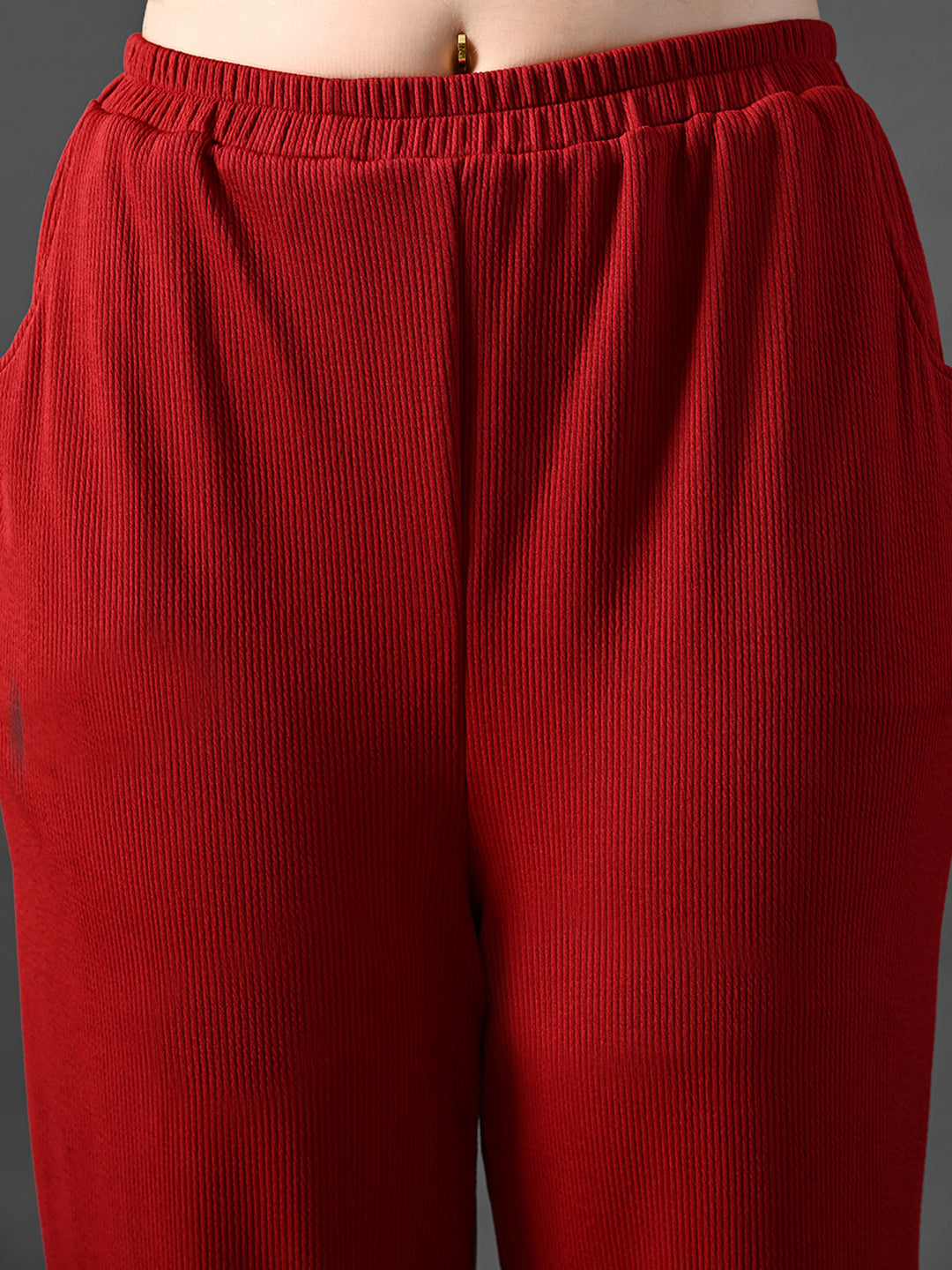 Myshka Women's Red Ribbed Cord Set Pack Contains: 1 Top & 1 Trouser Top Length of Kurta: 25 Top Shape: Relaxed Top Fabric: Polyester Top ...