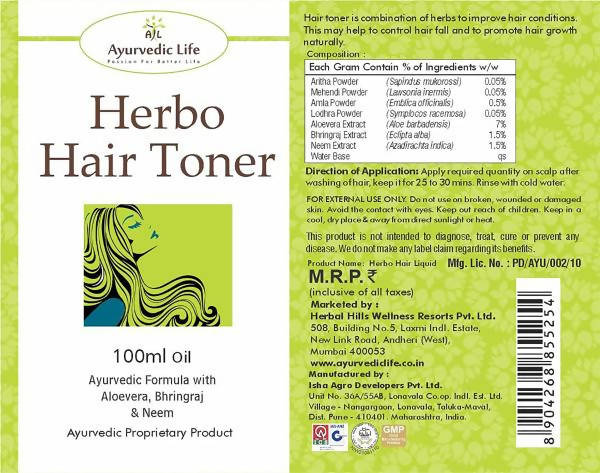 Ayurvedic Life Herbo Hair TonerThis hair toner is a combination of authentic hair care herbs such as aritha, mehendi, amla, lodhra, aloe vera, bhri...