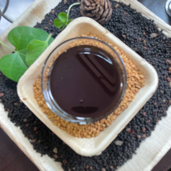 Ingredients: coconut oil, methi, nettle neem leaves, neem seeds, haritaki, bibhitaki, amla, lemon juice