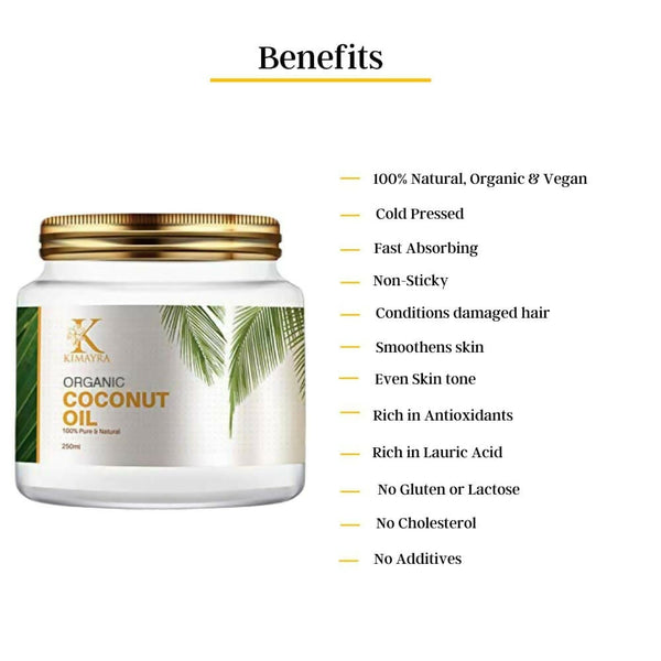 Kimayra World Organic Cold Pressed Coconut Oil with Natural Aroma of Coconut Oil for Hair & Dry SkinAbout the Product: PURE ORGANIC COLD PRESSE...