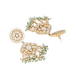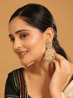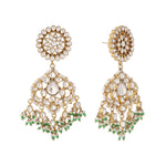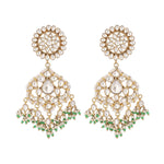 Nuyug 22K Gold Plated Traditional Kundan Studded Contemporary Dangler Earrings with Pearl and Green Bead Accents