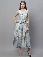 Jainish Women's Blue Printed A-Line DressesBrand Color : Blue Neck Type : V-Neck Pattern : Floral Material : Viscose Rayon Sleeves Type : Slee...
