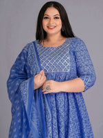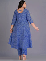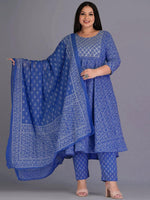 Blue and white printed Kurta with Trousers & dupatta