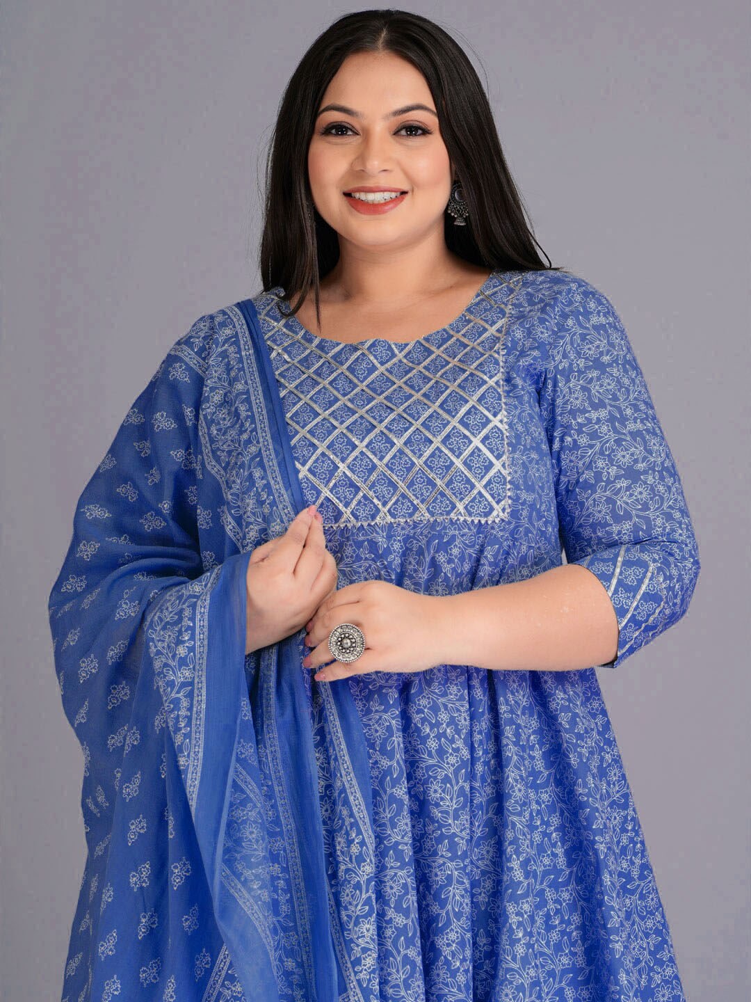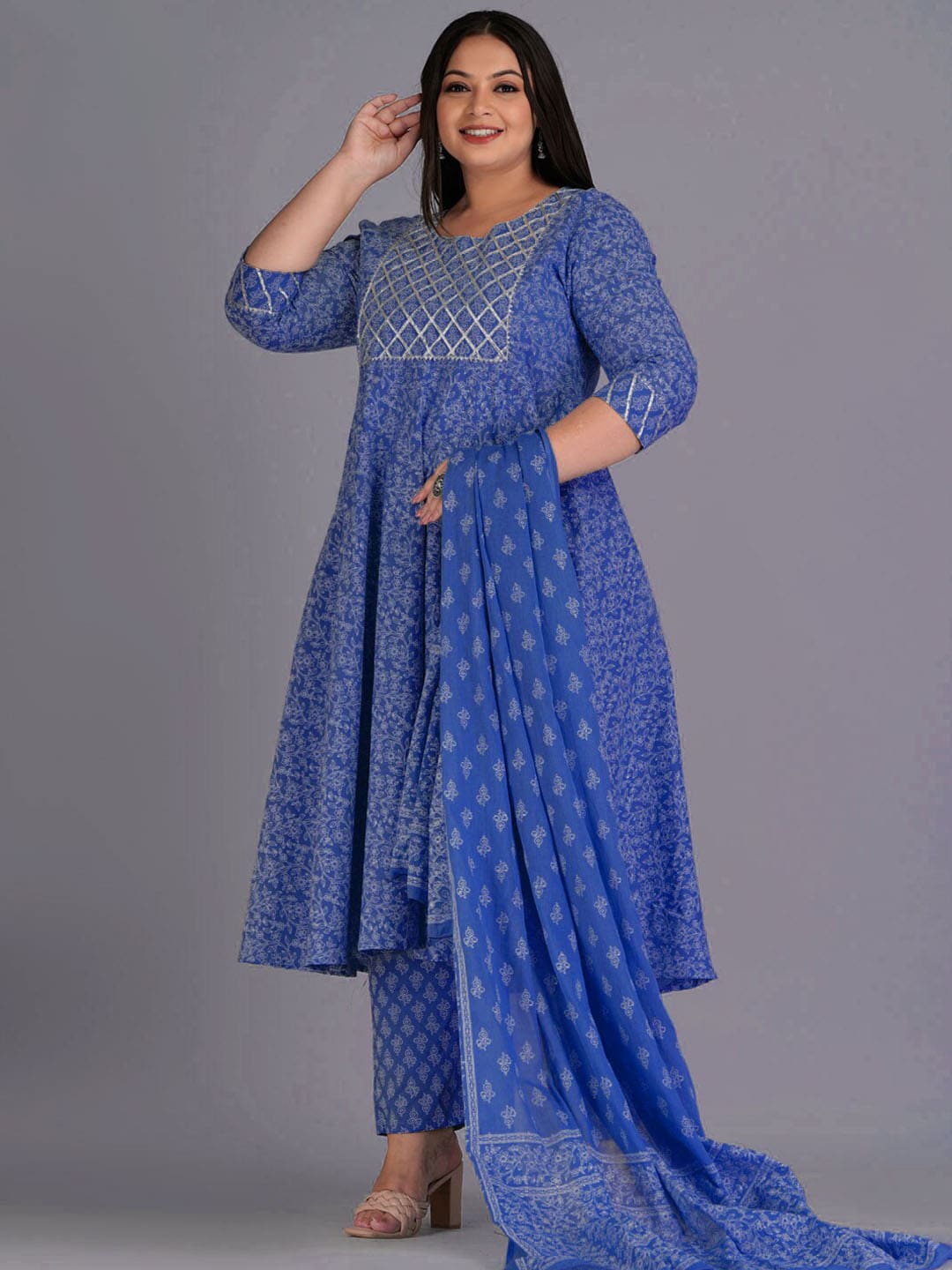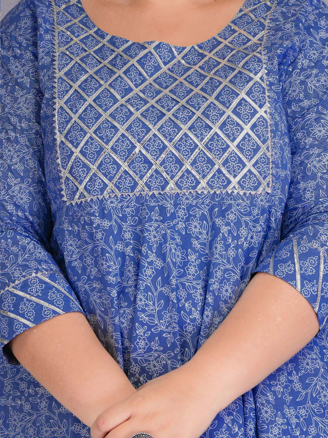 Kalini Ethnic Motifs Printed Gotta Patti Pure Cotton Kurta with Trousers & Dupatta Product Details Blue and white printed Kurta with Trouser...
