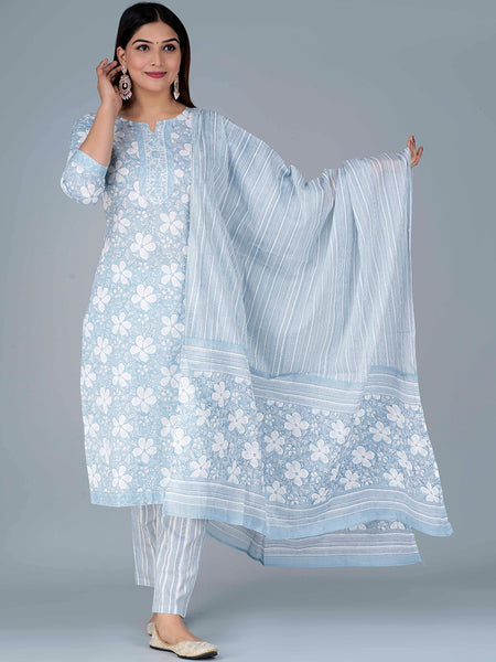 Kalini Floral Printed Pure Cotton Kurta with Pyjamas & Dupatta - S