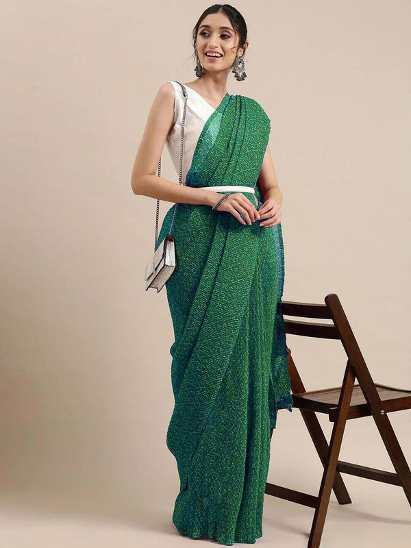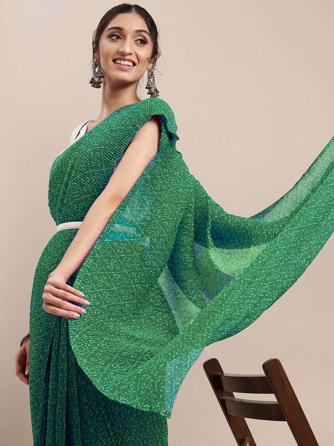 Kalini Green & White Bandhani Pure Georgette Bandhani Saree - Distacart