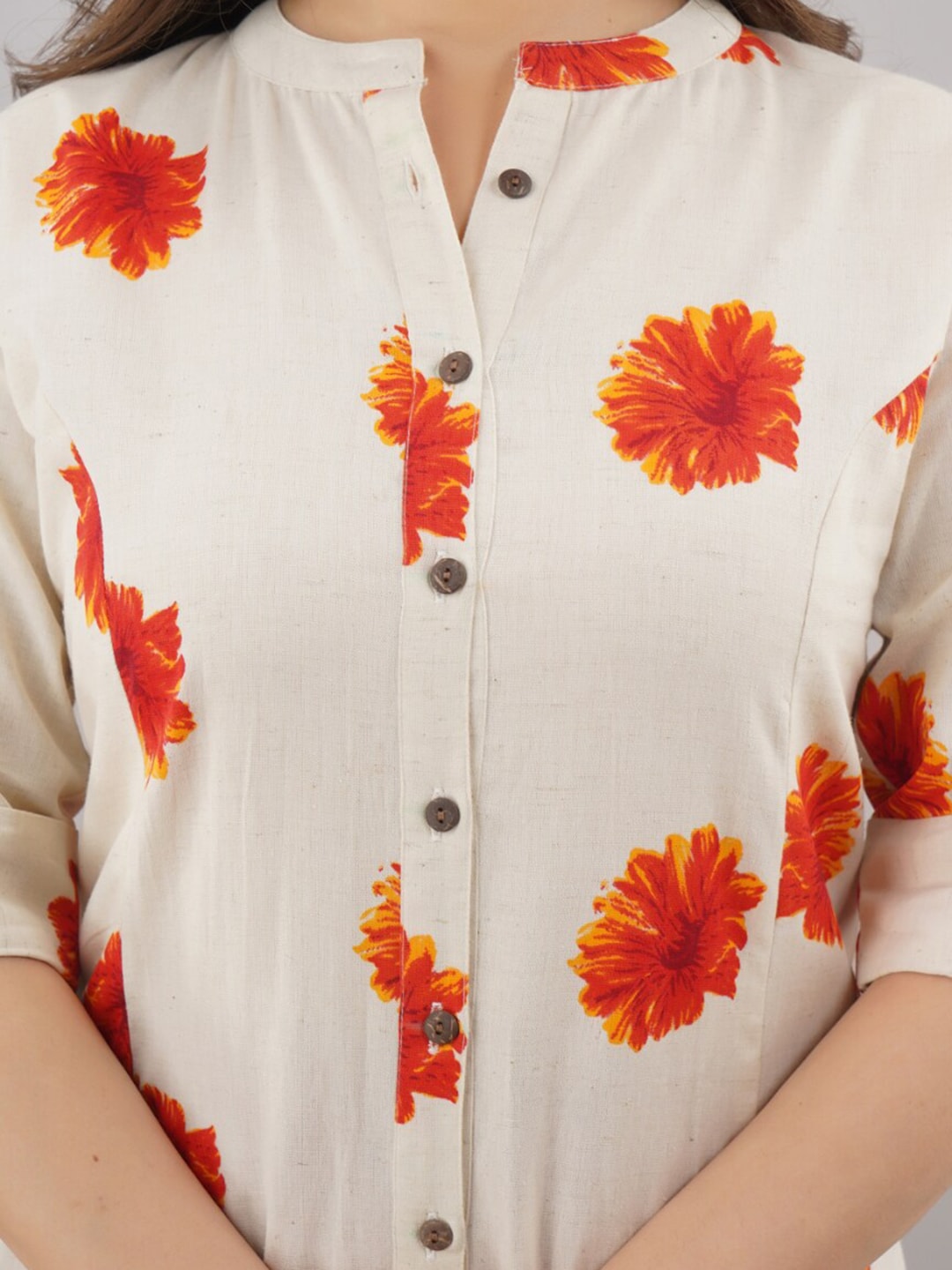 Kalini Women Beige Floral Printed Thread Work Floral Kurta Product Details Colour: beige Floral printed Mandarin collar Three-quarter, regular ...