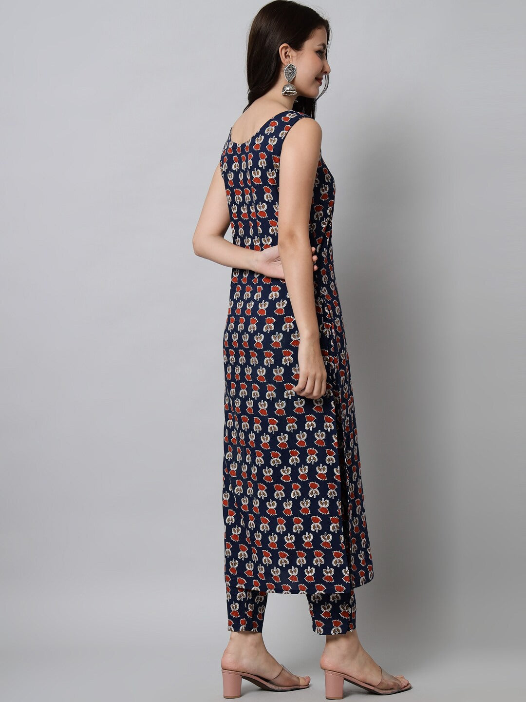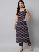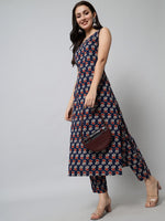 Kalini Women Blue Floral Printed Viscose Rayon Kurta with Trousers