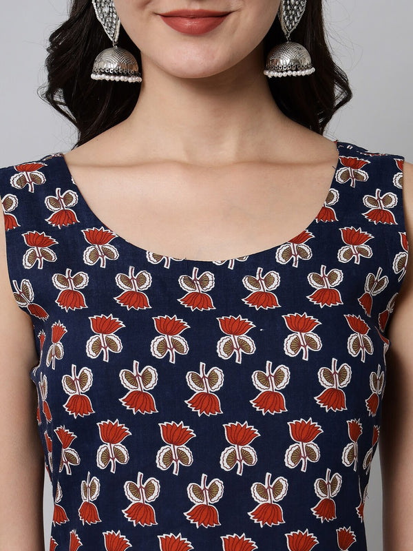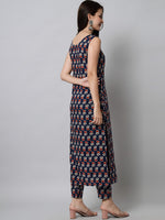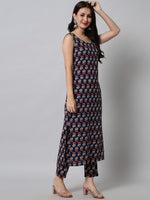 Kalini Women Blue Floral Printed Viscose Rayon Kurta with Trousers - S