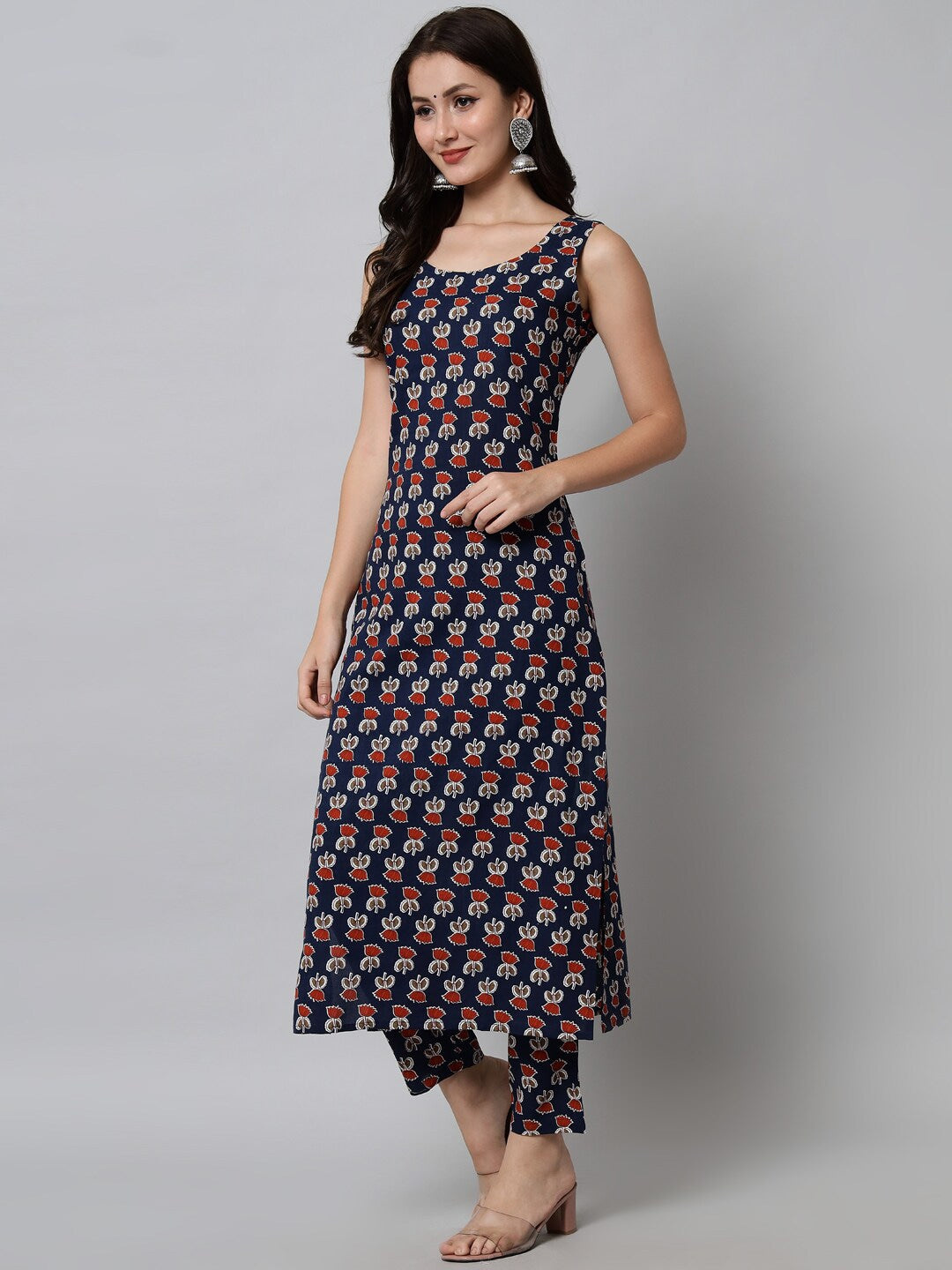 Kalini Women Blue Floral Printed Viscose Rayon Kurta with Trousers - Distacart