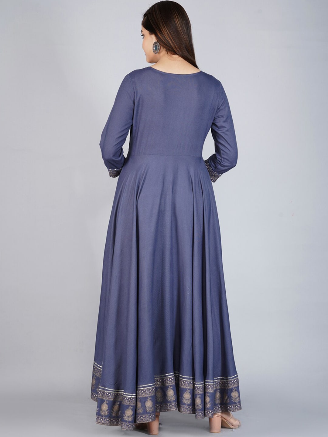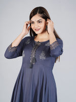 Kalini Women Blue Thread Work Anarkali Kurta Product Details Colour: grey Ethnic motifs embroidered Round neck Three-quarter, regular sleeves A...