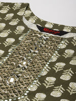 Kalini Women Floral Printed Mirror Work Kurta with Trousers & Dupatta Product Details Olive green printed Kurta with Trousers with dupattaKu...
