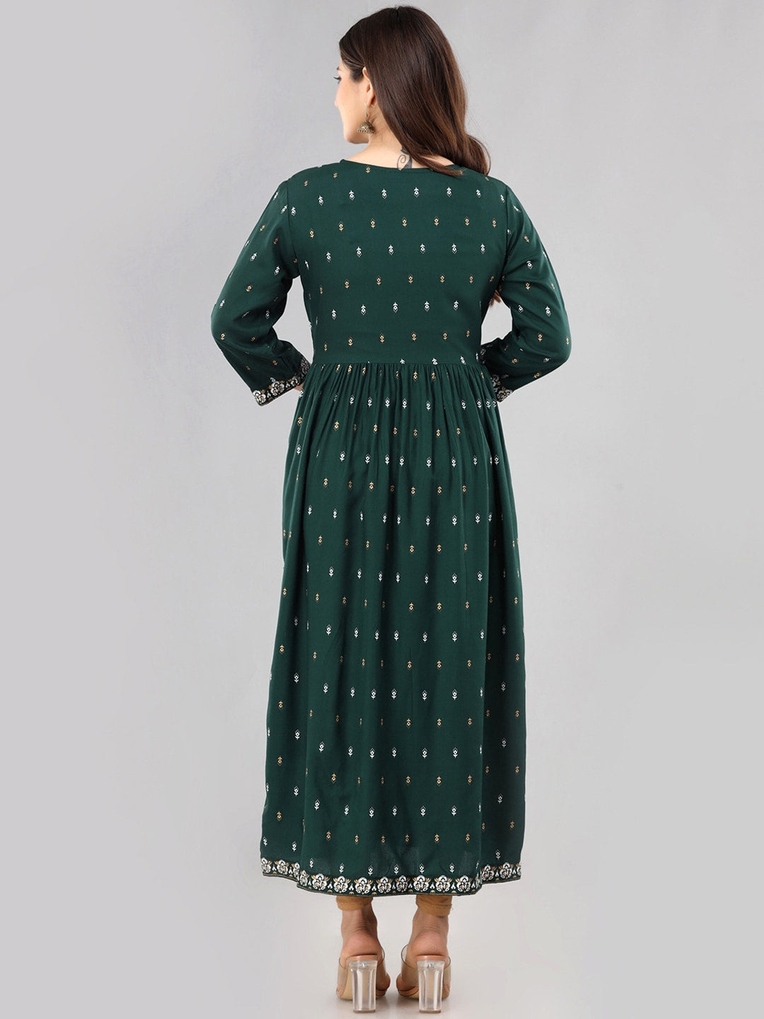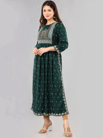 Kalini Women Green Floral Printed Floral Anarkali Kurta Product Details Colour: green Floral printed Round neck Three-quarter, regular sleeves ...