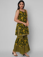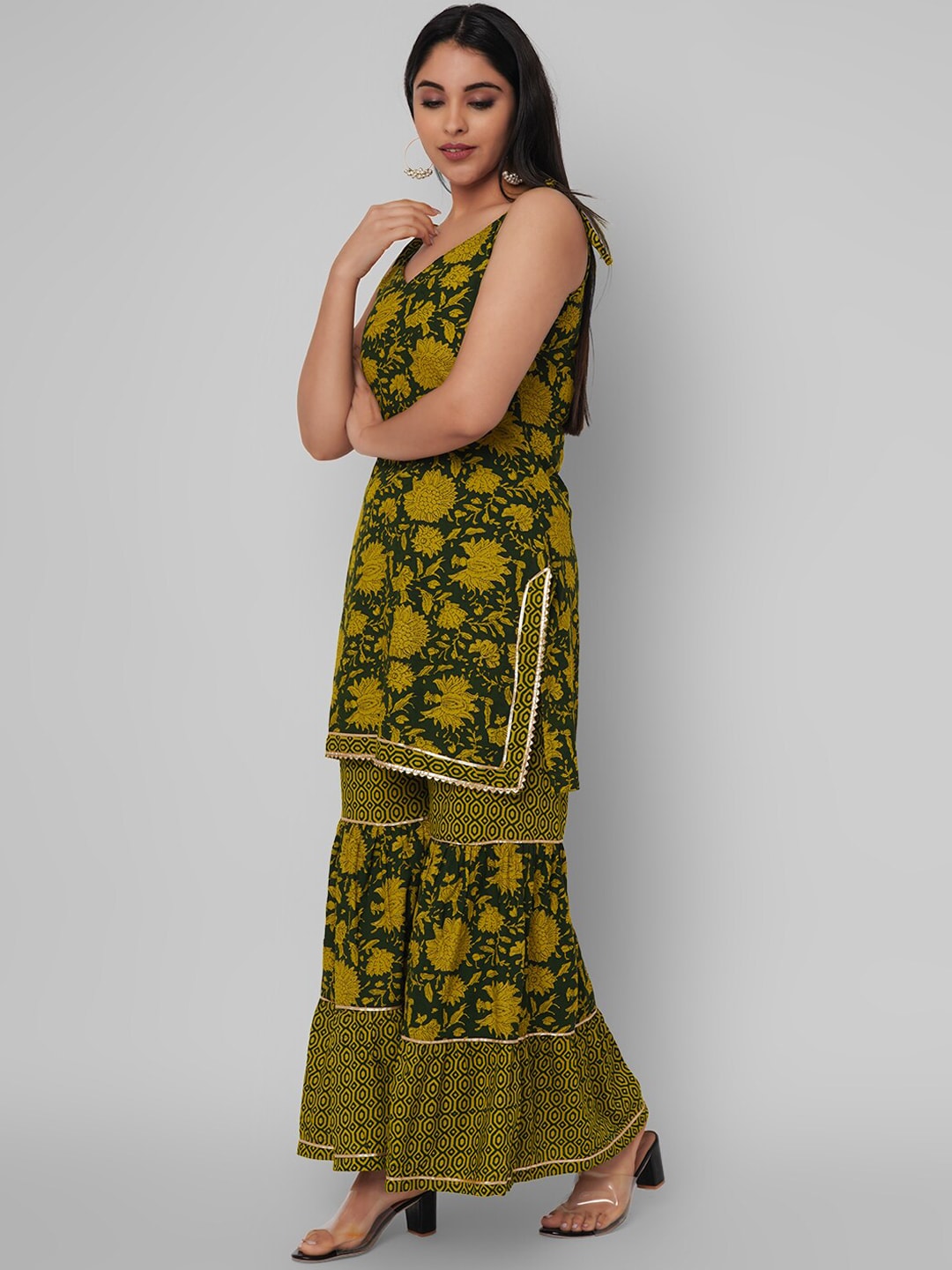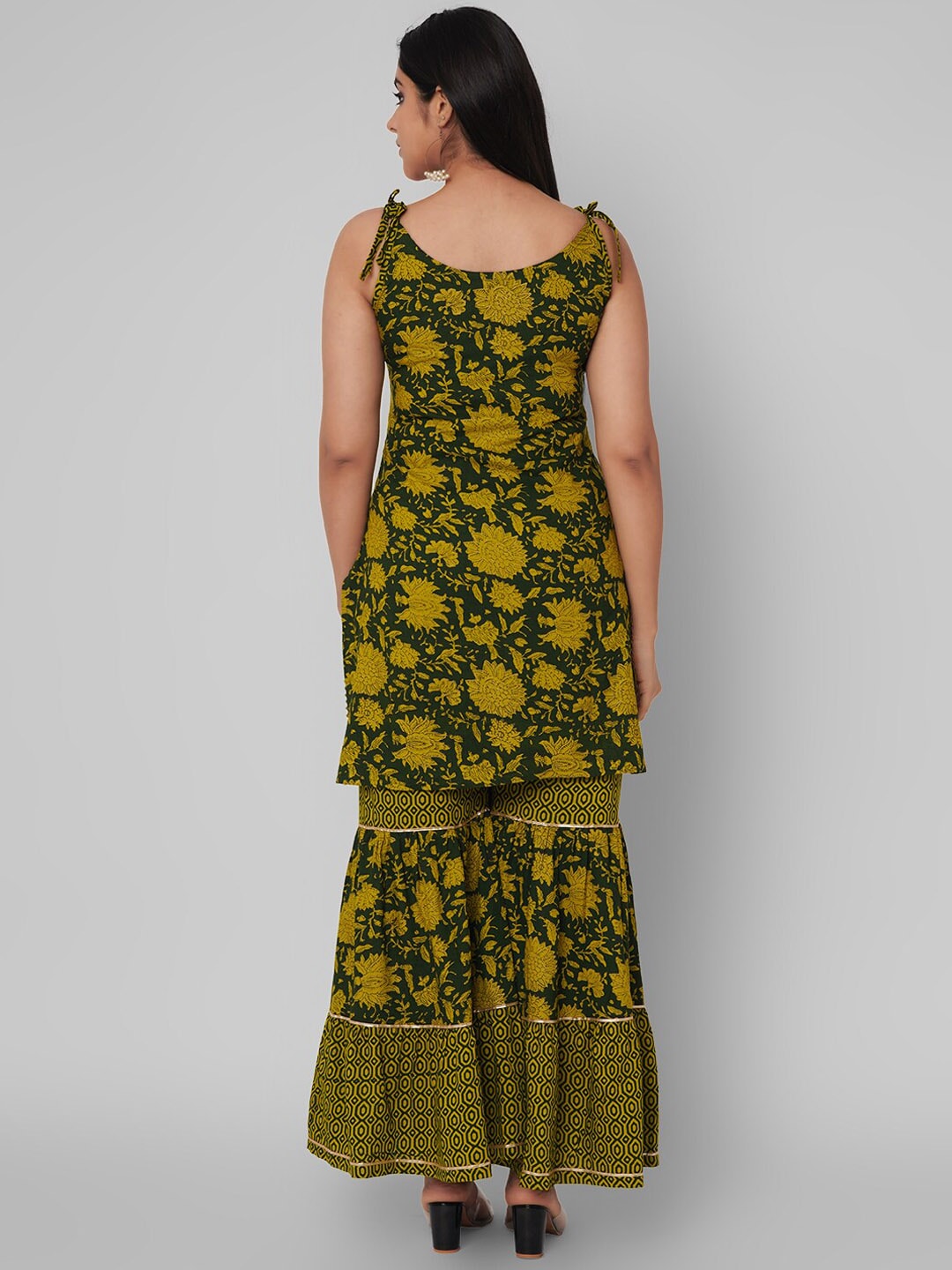 Kalini Women Green Floral Printed Gotta Patti Kurta with Sharara - Distacart