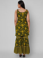 Kalini Women Green Floral Printed Gotta Patti Kurta with Sharara