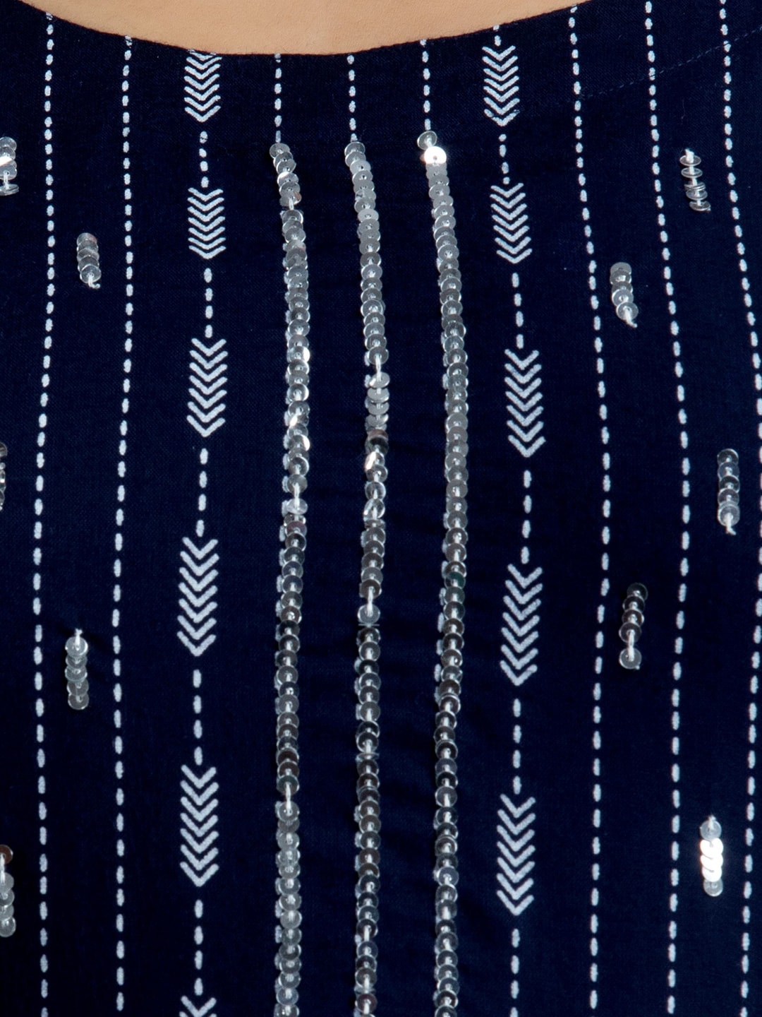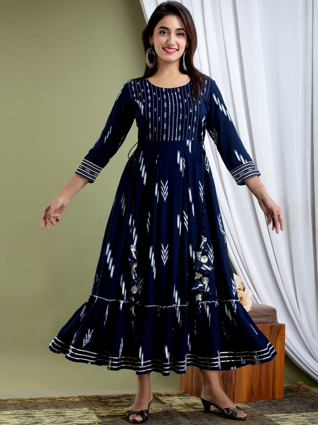 Kalini Women Navy Blue Printed Anarkali Kurta Product Details Colour: navy blue Ethnic motifs printed Round neck Three-quarter, regular sleeves...