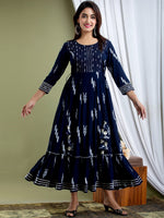 Kalini Women Navy Blue Printed Anarkali Kurta - Distacart