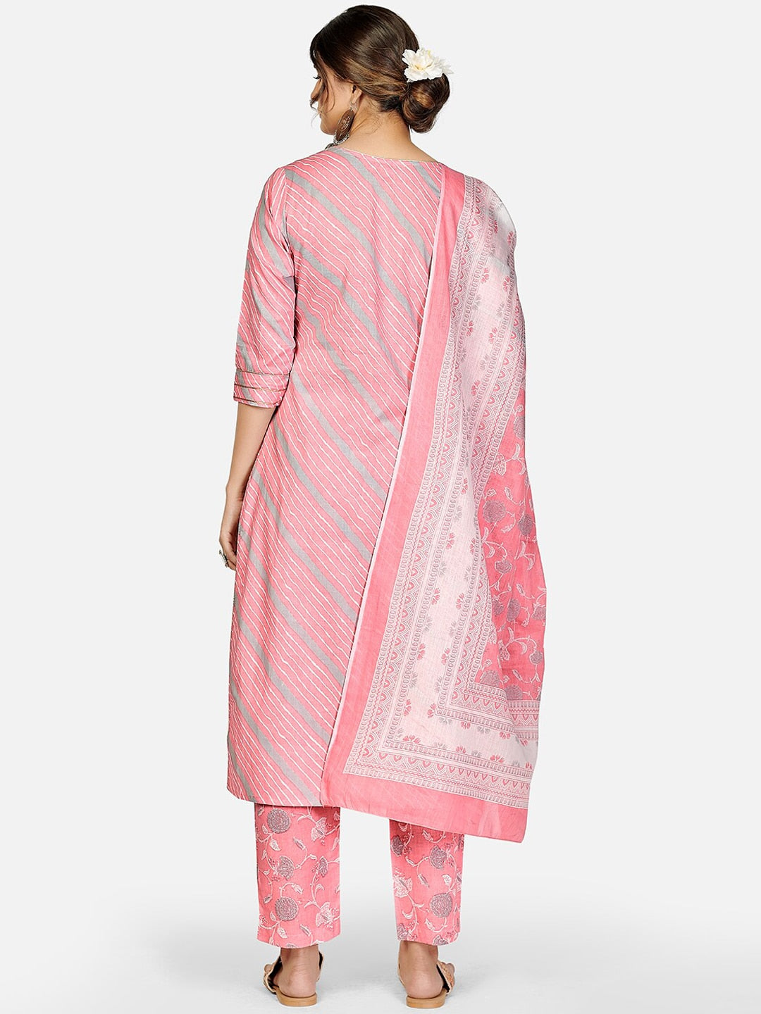 Kalini Women Pink Ethnic Motifs Striped Thread Work Pure Cotton Kurta with Trousers & With Dupatta Product Details Pink striped Kurta with T...