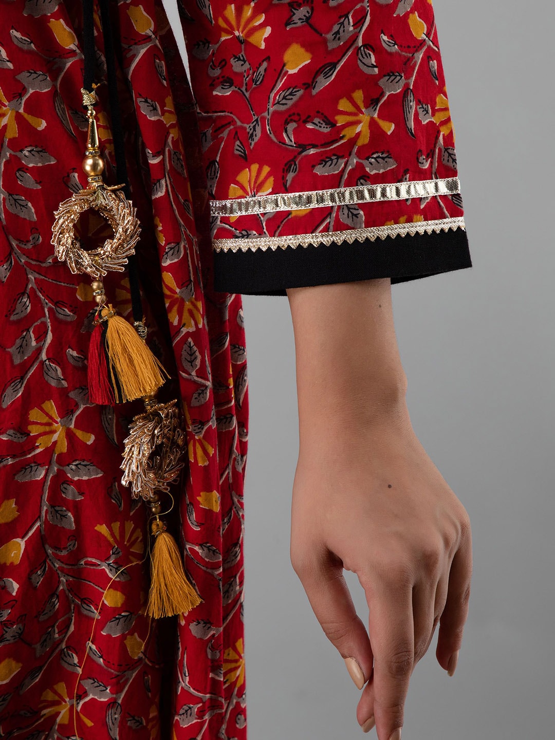 Kalini Women Red Ethnic Motifs Printed Gotta Patti Cotton Anarkali Kurta
