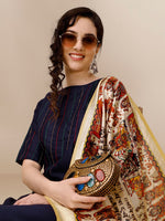 Kalini Women Striped Kurta with Trousers with Digital Print Dupatta Product Details Navy blue striped Kurta with Trousers with dupatta Kurta d...