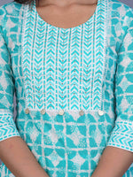 Kalini Women Turquoise Blue Printed Pure Cotton Kurta with Salwar & With Dupatta - Distacart