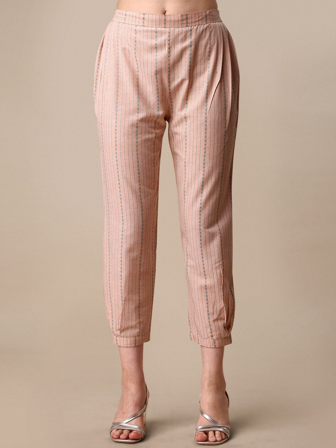 Peach-coloured striped Kurta with Trousers