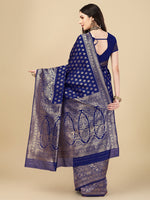 Kalini Woven Design Zari Art Silk Banarasi Saree Product Details Design Details Blue and gold-toned banarasi saree Ethnic motifs saree with wo...