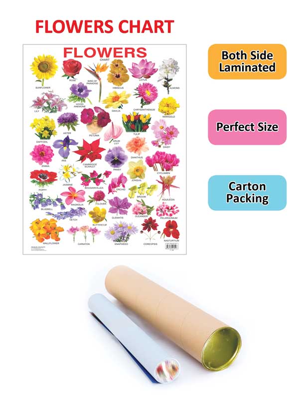 Beautifully designed ‘Flowers Educational Wall Chart’ has colourful pictures of a variety of flowers that we see in our day-to-day life and some other unfamiliar flowers with their names written underneath.