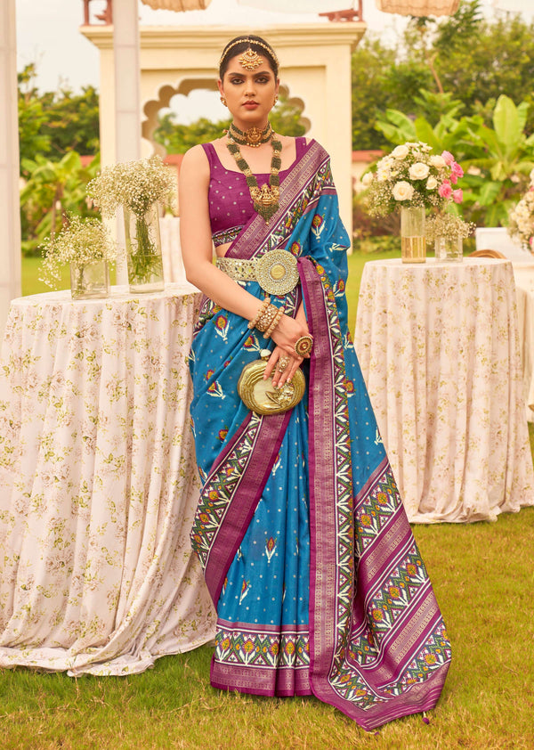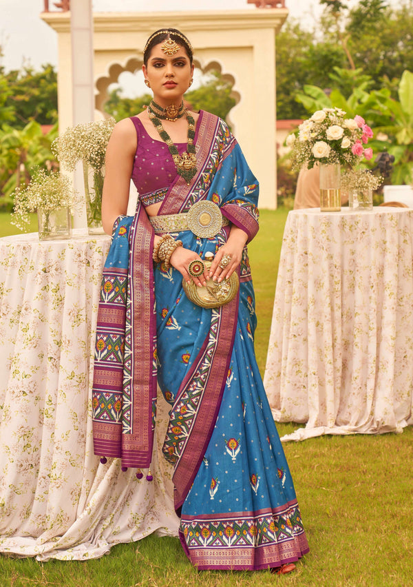 Monjolika Fashion Blue Colour Sigma Silk Patola Printed Saree With Blouse
