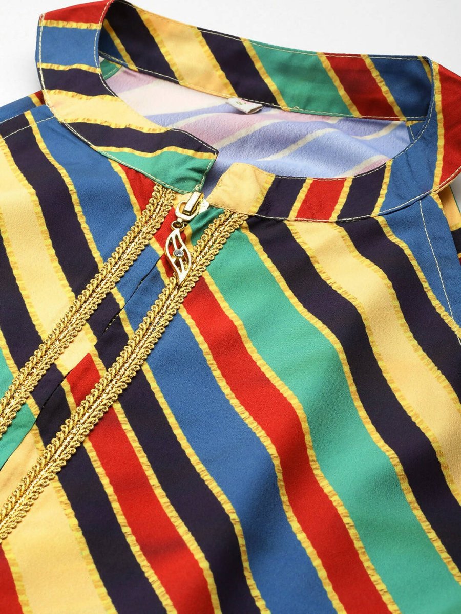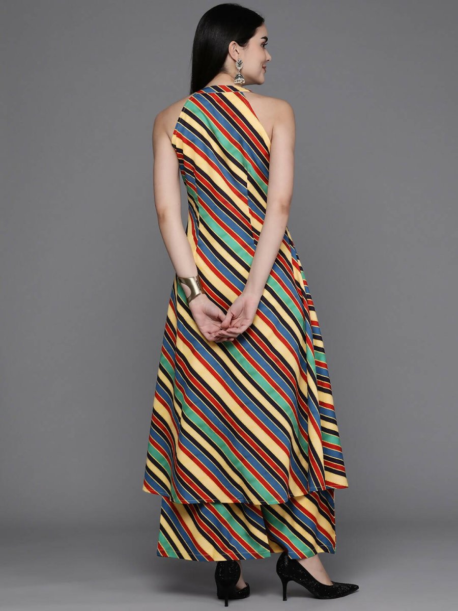 Ahalyaa Women Striped High Slit Kurta with Palazzos - Green Color Age Group: Adults-Women Prominent Colour: Green Second Prominent Colour: Yello...