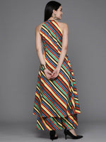 Ahalyaa Women Striped High Slit Kurta with Palazzos - Green Color - XS