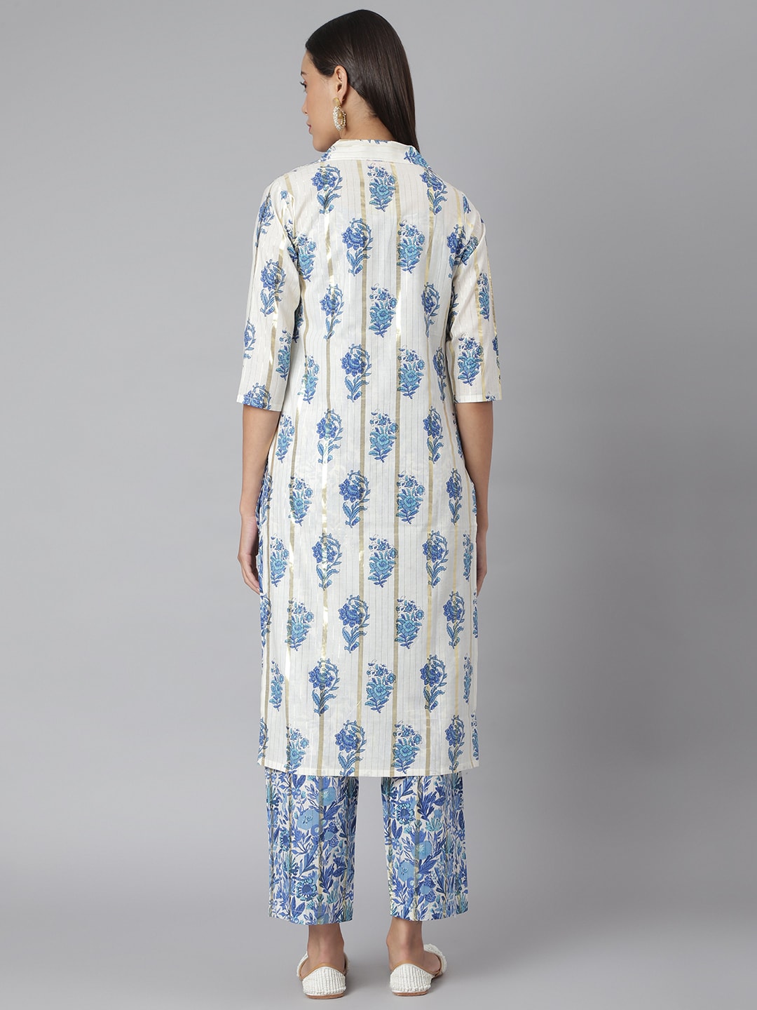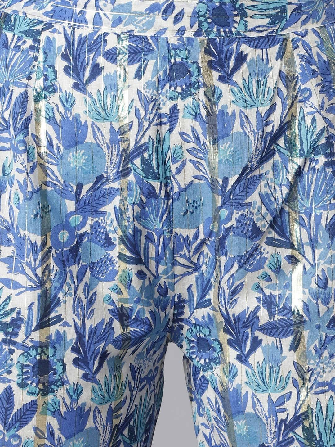 Blue and white printed kurta with palazzos