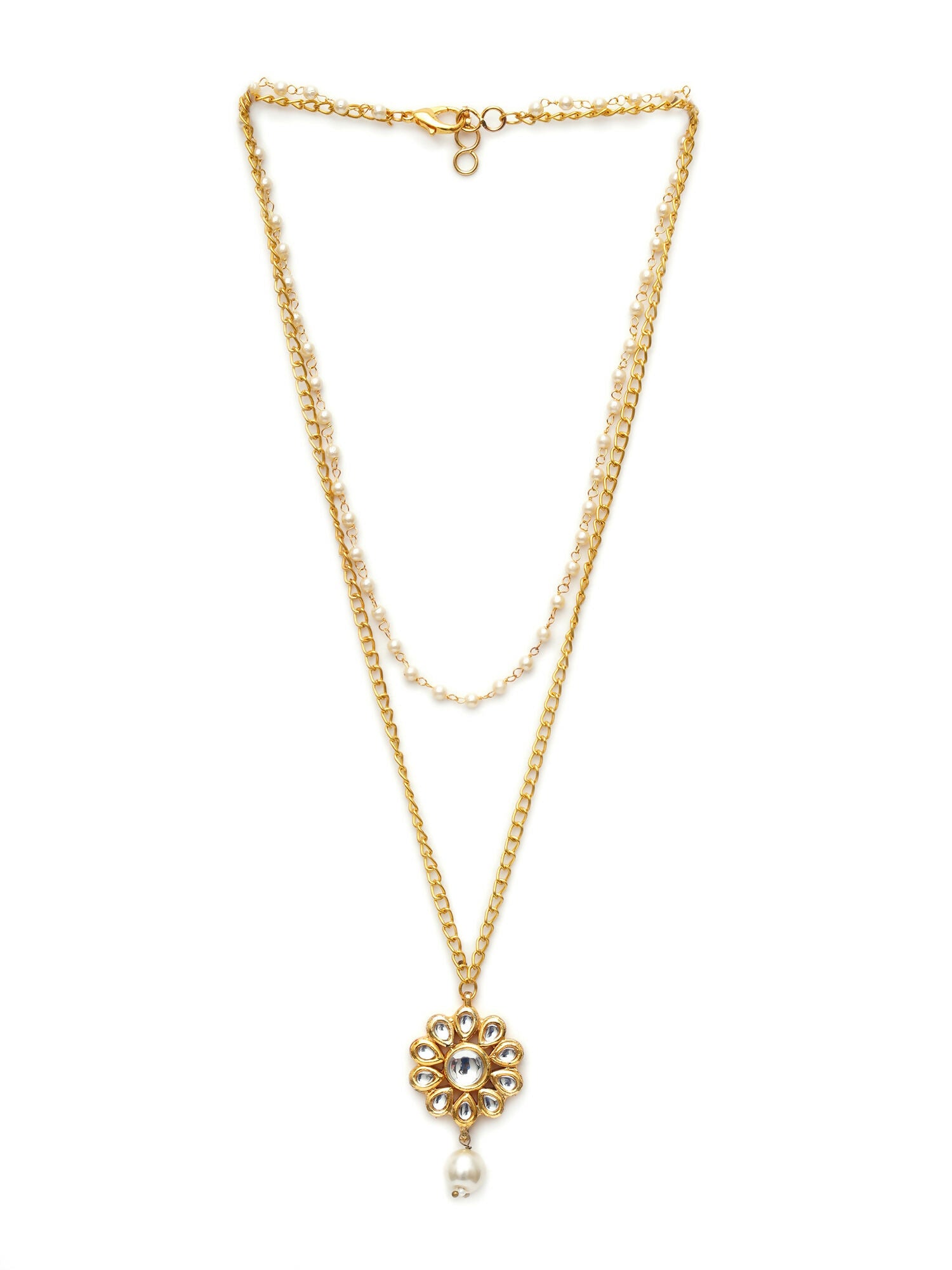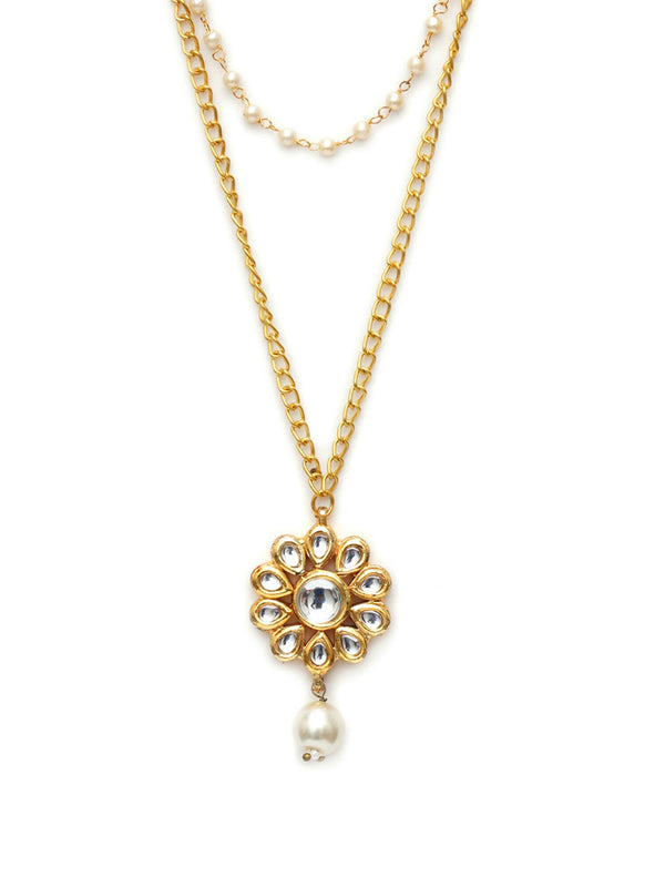 Layered Kundan and Pearl Gold Neckpiece (gold) - Ruby Raang - Distacart