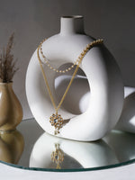 Layered Kundan and Pearl Gold Neckpiece (gold) - Ruby Raang