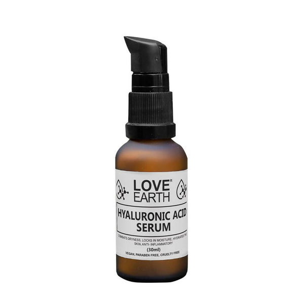 • The main advantage of adding Hyaluronic Acid Serum to your daily skin care regime is that it acts as a sponge which attracts moisture from your surrounding and also from moisturizers that you apply before using serum. This serum from Love Earth makes your skin hydrated from within which helps prevent signs of aging. This highly effective and nourishing serum also helps soothe your skin after an exfoliation.