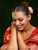 Ruby Raang Gold Polished Green Stone Kundan Maang TikkaProduct Details:celebrates women who dare to dream and shape their own destinies. Designed f...