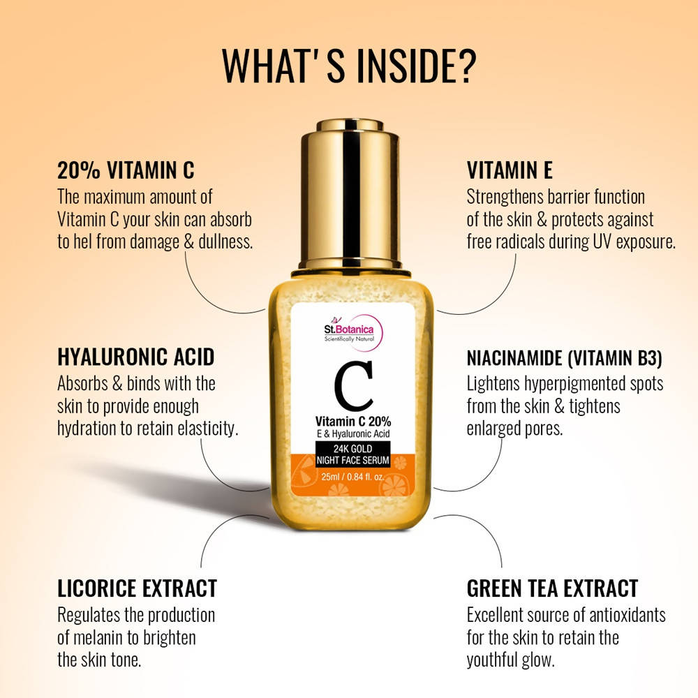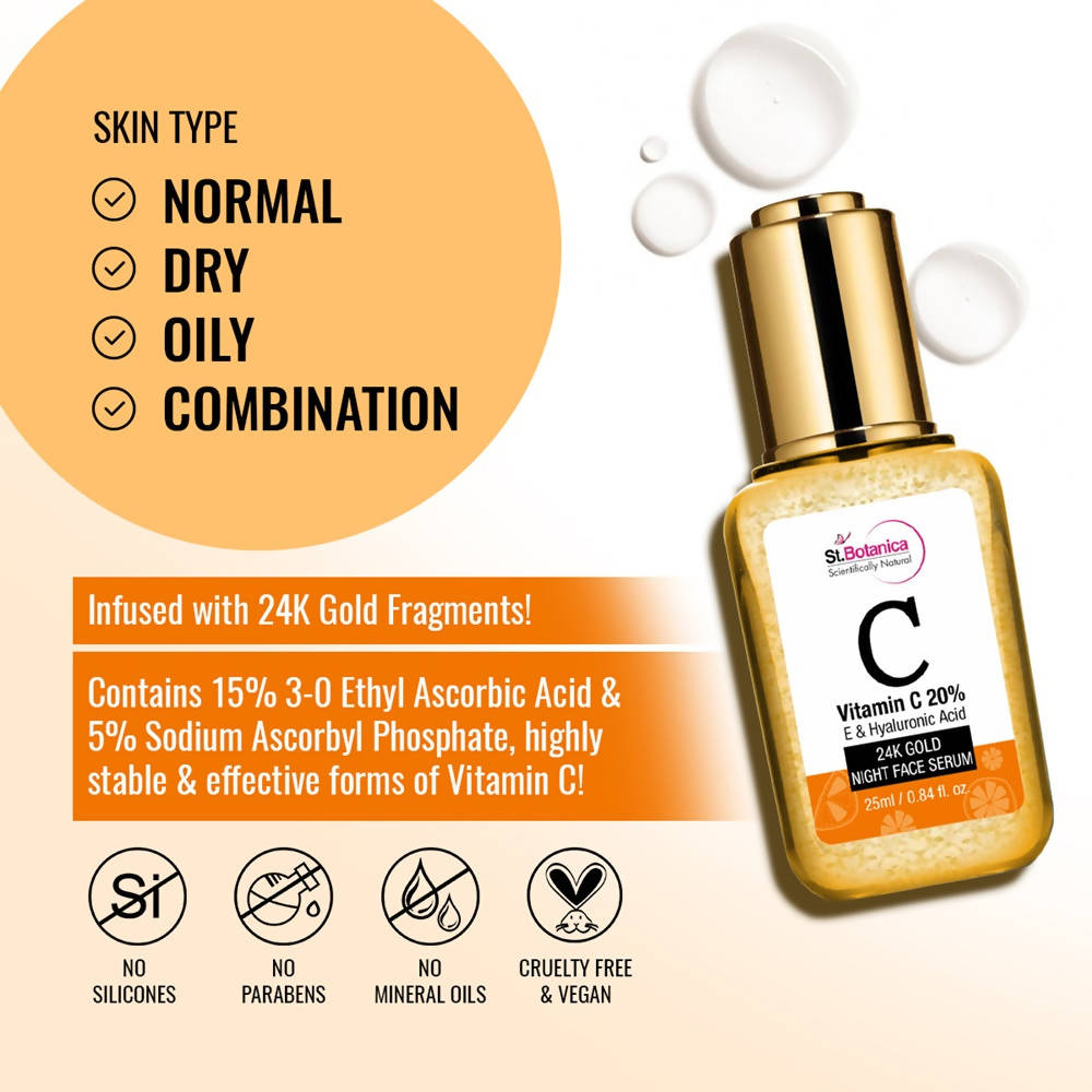 St.Botanica Vitamin C 20%, E & Hyaluronic Acid 24k Gold Night Face Serum - 25 ml