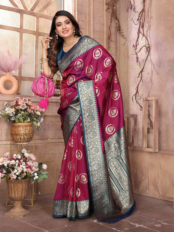 Joban Fashion Magenta Banarasi Soft Silk Woven Saree
