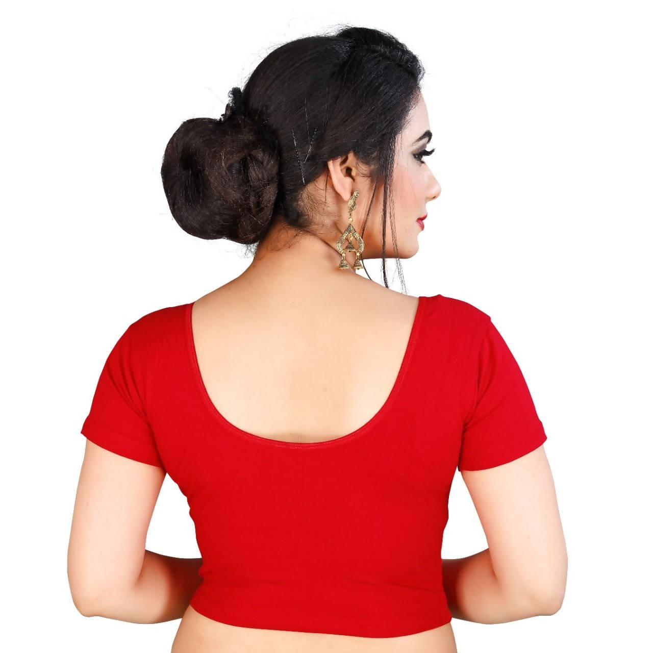 Vamika Red Lycra Plain Blouse Work: Plain Fabric: Lycra Color Top: Red Chest: Strechable 30 to 40 size Length: 15.5 Sleeves: Half Sleeves Cu...