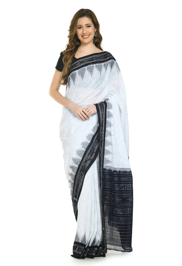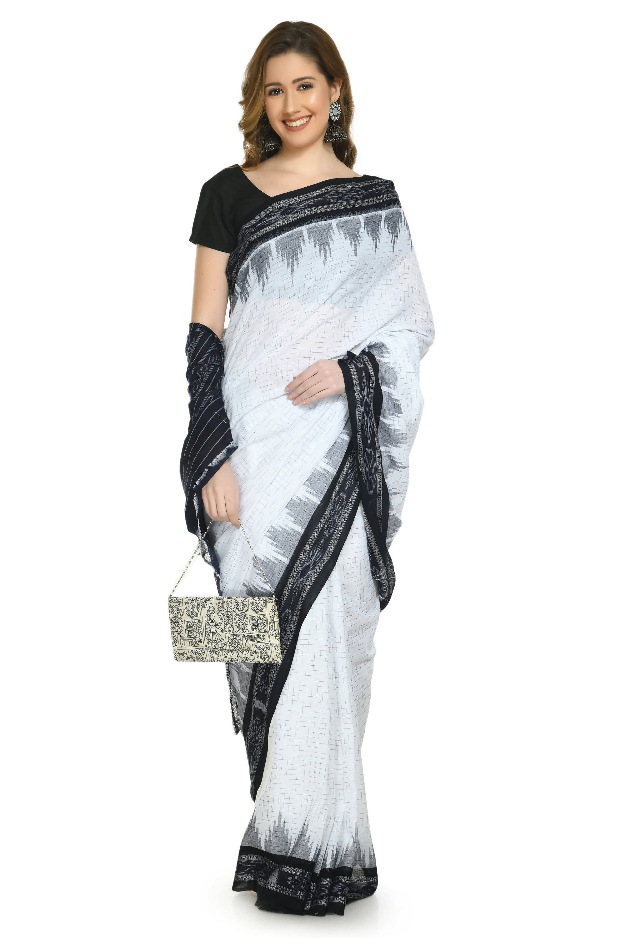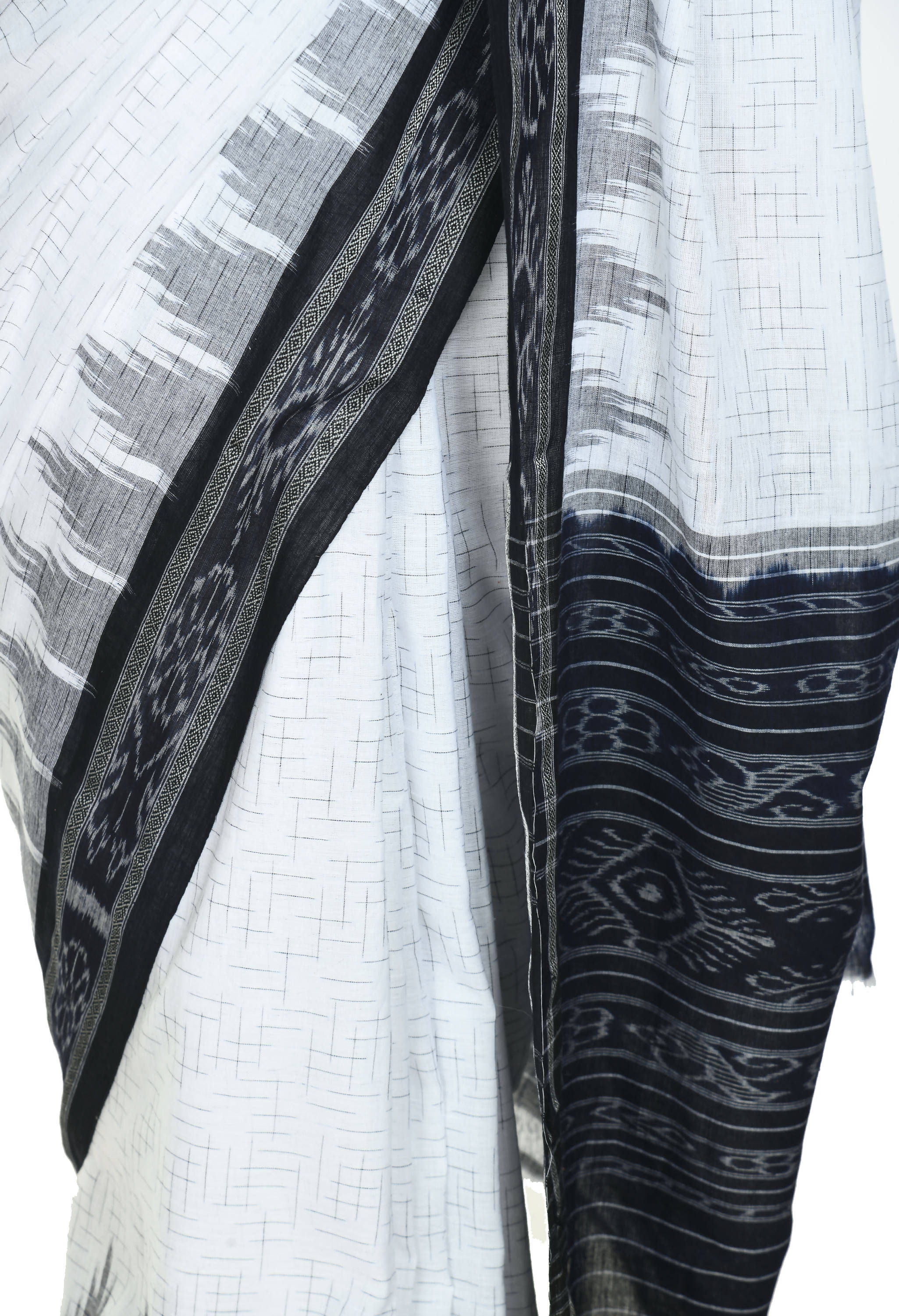 Vamika Sambalpuri Ikat Cotton Jharana White & Black Saree