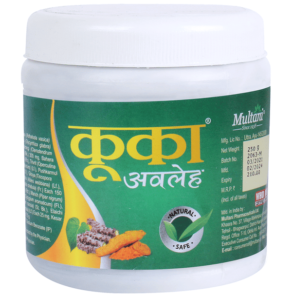 Multani Kuka AwalehaMultani Kuka AwalehaMultani Kuka Awaleha is Rasayana, expectorant, common Flu or as directed by the physician.Key Ingredients:A...