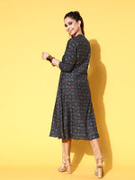 All About You Women Printed Bold Decorations Layered A-Line Kurta Product Details Colour: Navy blue and red Ethnic motifs printed Mandarin coll...
