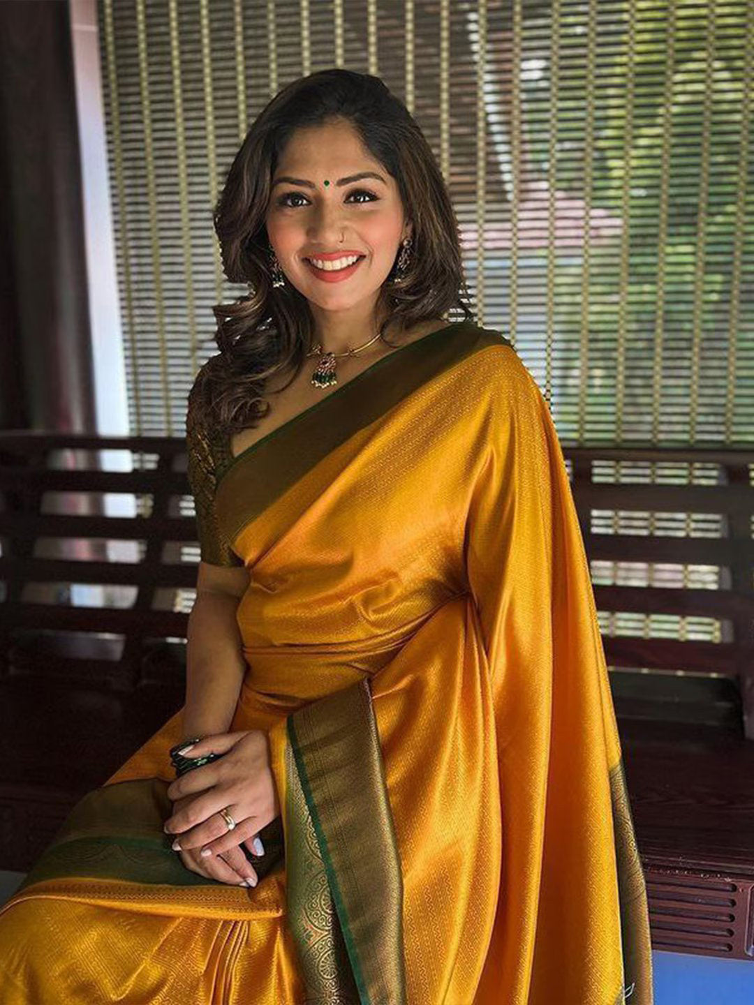 • Yellow and green banarasi saree