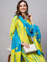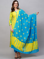 Yellow tie & dye printed Kurta with Trousers & dupatta :